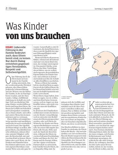 ESSAY. Liebevolle Führung in der Familie bedeutet auch, dass Eltern bereit sind, zu lernen. Nur durch Dialog entstehen gegenseitiges Verständnis, Respekt und Selbstwertgefühl.