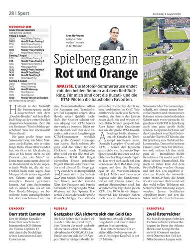 analyse. Die MotoGP-Sommerpause endet mit den beiden Rennen auf dem Red-Bull-Ring. Für mich sind dort die Ducati- und die KTM-Piloten die haushohen Favoriten.