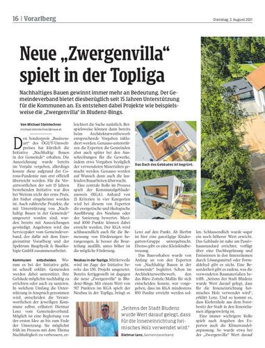 Nachhaltiges Bauen gewinnt immer mehr an Bedeutung. Der Gemeindeverband bietet diesbezüglich seit 15 Jahren Unterstützung für die Kommunen an. Es entstehen dabei Projekte wie beispielsweise die „Zwergenvilla“ in Bludenz-Bings.