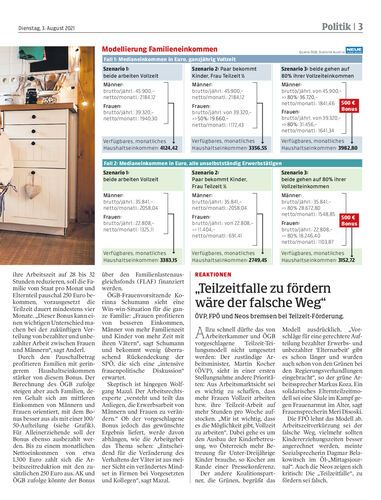 ÖVP, FPÖ und Neos bremsen bei Teilzeit-Förderung.