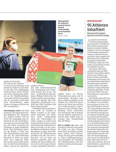 Ein politischer Sportkrimi erschüttert Olympia. Die weißrussische Sprinterin Kristina Timanowskaja hätte in ihre Heimat entführt werden sollen. Sie fand Aufnahme in der polnischen Botschaft in Tokio.