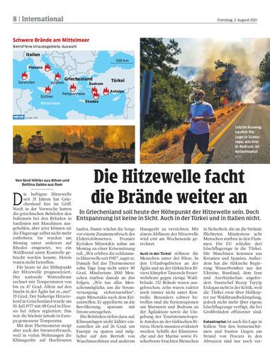 In Griechenland soll heute der Höhepunkt der Hitzewelle sein. Doch Entspannung ist keine in Sicht. Auch in der Türkei und in Italien nicht.
