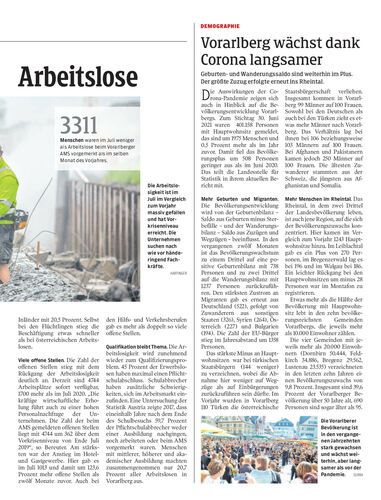Vorarlberg wächst dank Corona langsamer