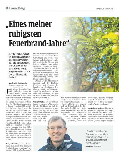 Der Feuerbrand ist in diesem Jahr kein größeres Problem für die Obstbauern. Dafür gibt es aufgrund des vielen Regens mehr Druck durch Pilzkrankheiten.
