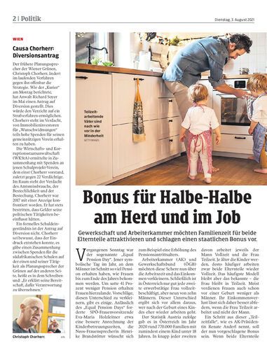 Gewerkschaft und Arbeiterkammer möchten Familienzeit für beide Elternteile attraktivieren und schlagen einen staatlichen Bonus vor.