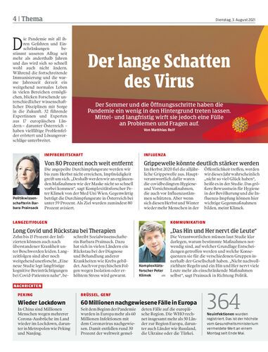 Der Sommer und die Öffnungsschritte haben die Pandemie ein wenig in den Hintergrund treten lassen. Mittel- und langfristig wirft sie jedoch eine Fülle an Problemen und Fragen auf. Von Matthias Reif