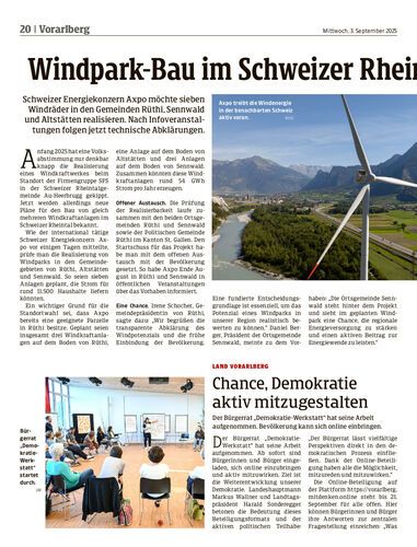 Schweizer Energiekonzern Axpo möchte sieben Windräder in den Gemeinden Rüthi, Sennwald und Altstätten realisieren. Nach Infoveranstaltungen folgen jetzt technische Abklärungen.