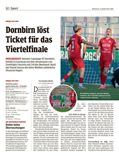 Spielbericht. Rekord-Cupsieger FC Dornbirn behält in Lustenau bei den Amateuren von Zweitligist Austria mit 3:0 die Oberhand. Nach der Pause lassen die Grün-Weißen zahlreiche Chancen liegen.