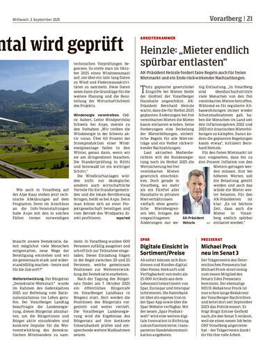 AK-Präsident Heinzle fordert faire Regeln auch für freien Mietmarkt und ein Ende rückwirkender Nachzahlungen.