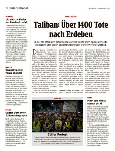 In der am stärksten betroffenen Provinz Kunar seien mindestens 1411 Menschen ums Leben gekommen und 3124 weitere verletzt worden.