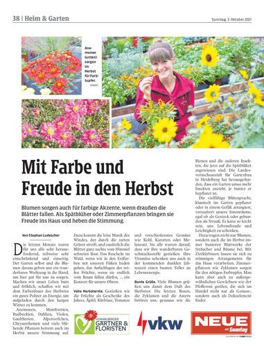 Blumen sorgen auch für farbige Akzente, wenn draußen die Blätter fallen. Als Spätblüher oder Zimmerpflanzen bringen sie Freude ins Haus und heben die Stimmung.