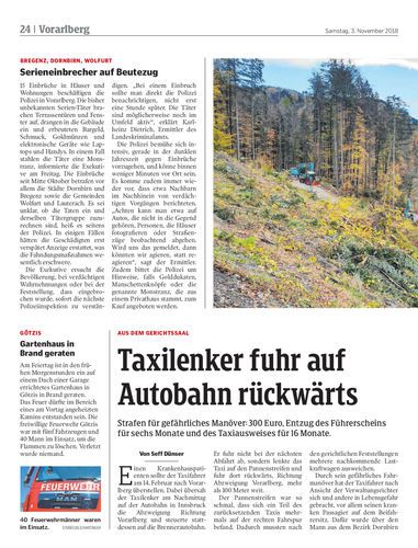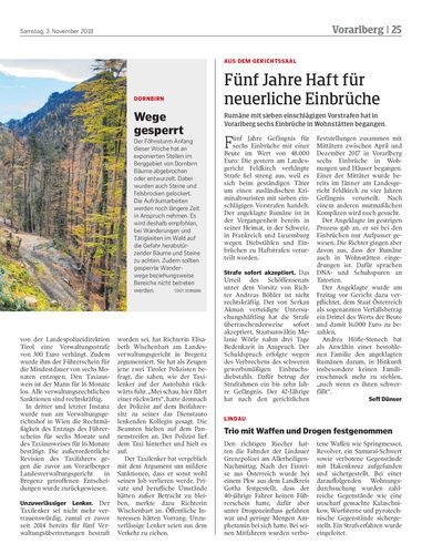 Vorarlberg sechs Einbrüche in Wohnstätten begangen.