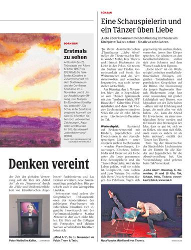 „Liebe üben“ ist am kommenden Dienstag im Theater am Kirchplatz (Tak) zu sehen – für alle ab zehn Jahren.