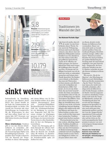 Im Vergleich zum Oktober des Vorjahres ist die Zahl der Beschäftigungslosen in Vorarlberg in Summe um 2,1 Prozent gefallen.
