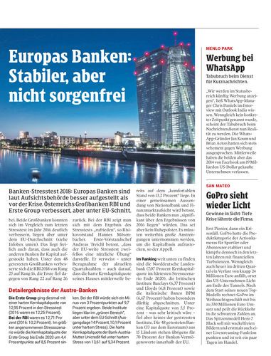 Banken-Stresstest 2018: Europas Banken sind laut Aufsichtsbehörde besser aufgestellt als vor der Krise. Österreichs Großbanken RBI und Erste Group verbessert, aber unter EU-Schnitt.
