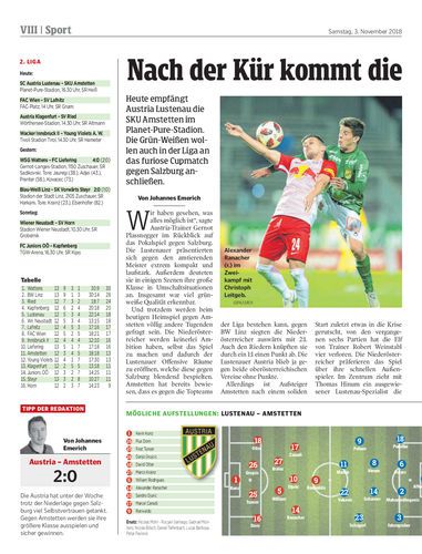 Heute empfängt Austria Lustenau die SKU Amstetten im Planet-Pure-Stadion. Die Grün-Weißen wollen auch in der Liga an das furiose Cupmatch gegen Salzburg anschließen.