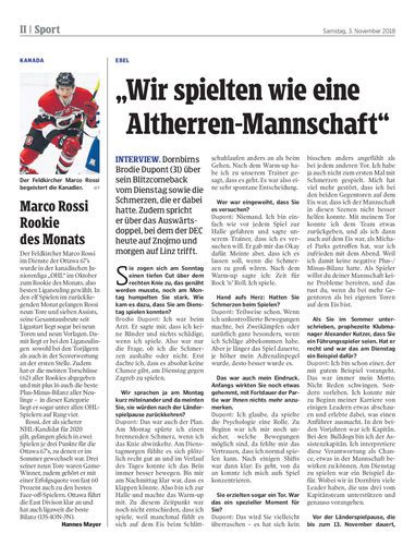 Interview. Dornbirns Brodie Dupont (31) über sein Blitzcomeback vom Dienstag sowie die Schmerzen, die er dabei hatte. Zudem spricht er über das Auswärtsdoppel, bei dem der DEC heute auf Znojmo und morgen auf Linz trifft.