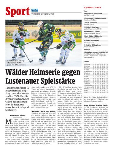 Tabellennachzügler EC Bregenzerwald empfängt heute im Messestadion (19.30 Uhr) die drittplatzierten Weber-Cracks aus Lustenau. Die VEU Feldkirch muss Auswärtsdoppel bestreiten.