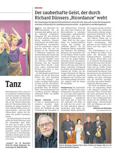 Der Vorarlberger Komponist Richard Dünser wünschte sich, dass sein erstes Klavierquartett erstmals in Österreich im vorarlberg museum ertönt – so geschah es am Montagabend.