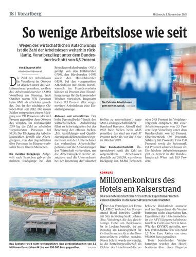 Wegen des wirtschaftlichen Aufschwungs ist die Zahl der Arbeitslosen weiterhin rückläufig. Vorarlberg liegt unter dem Bundesdurchschnitt von 6,5 Prozent.