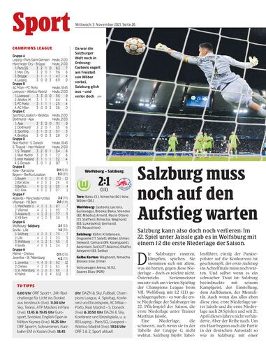Salzburg kann also doch noch verlieren: Im 22. Spiel unter Jaissle gab es in Wolfsburg mit einem 1:2 die erste Niederlage der Saison.