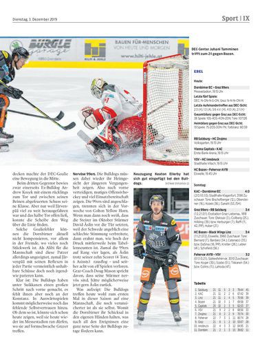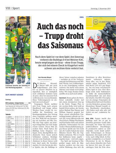Nach dem Spiel ist vor dem Spiel. Am Sonntag verloren die Bulldogs 0:4 bei Meister KAC, heute empfangen sie Graz – ohne Evan Trupp, der sich bei einem Check in Klagefurt wohl schwer am rechten Knie verletzt hat.