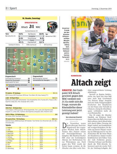 Analyse. Der Cashpoint SCR Altach gewinnt gegen den WAC verdient mit 2:1. Es stellt sich die Frage, warum die Rheindörfler diese Leistung erst jetzt gezeigt haben?