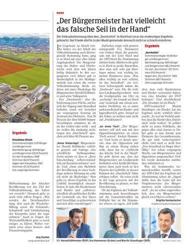 Die Volksabstimmung über den „Durchstich“ in Hard hat zwar ein eindeutiges Ergebnis gebracht. Der Friede dürfte in der Marktgemeinde dennoch nicht so schnell einkehren.