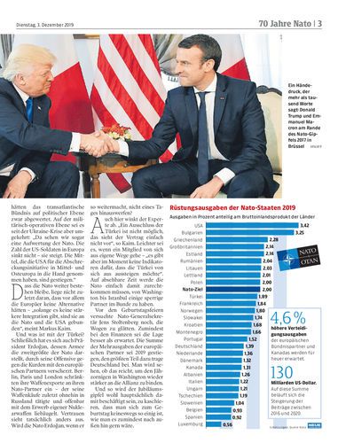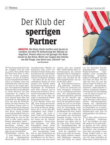 analyse. Die Nato-Chefs treffen sich heute in London, um den 70. Geburtstag der Allianz zu begehen. Feiern wäre zu viel gesagt: Die Nato steckt in der Krise. Nicht nur wegen des Streits um die Frage, wer denn nun „hirntot“ sei. Von Nina Koren