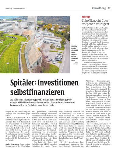 Ab 2020 muss landeseigene Krankenhaus-Betriebsgesellschaft KHBG ihre Investitionen selbst fremdfinanzieren und bekommt keine Darlehen vom Land mehr.