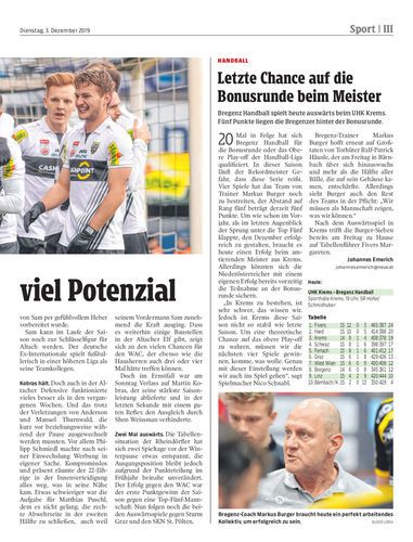 Bregenz Handball spielt heute auswärts beim UHK Krems. Fünf Punkte liegen die Bregenzer hinter der Bonusrunde.