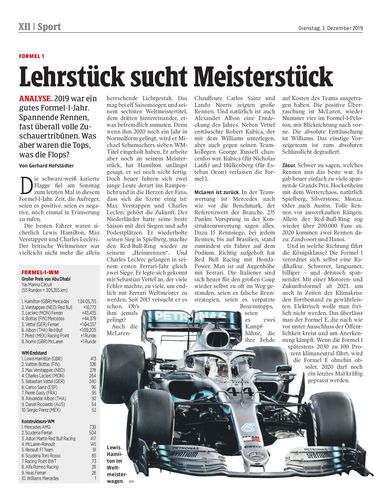 Analyse. 2019 war ein gutes Formel-1-Jahr. Spannende Rennen, fast überall volle Zuschauertribünen. Was aber waren die Tops, was die Flops?