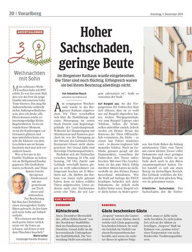 Im Bregenzer Rathaus wurde eingebrochen. Die Täter sind noch flüchtig. Erfolgreich waren sie bei ihrem Beutezug allerdings nicht.