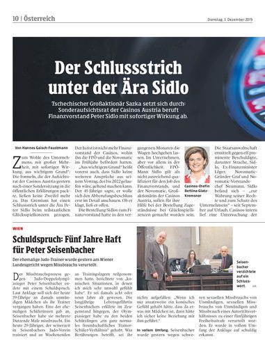 Tschechischer Großaktionär Sazka setzt sich durch: Sonderaufsichtsrat der Casinos Austria beruft Finanzvorstand Peter Sidlo mit sofortiger Wirkung ab.