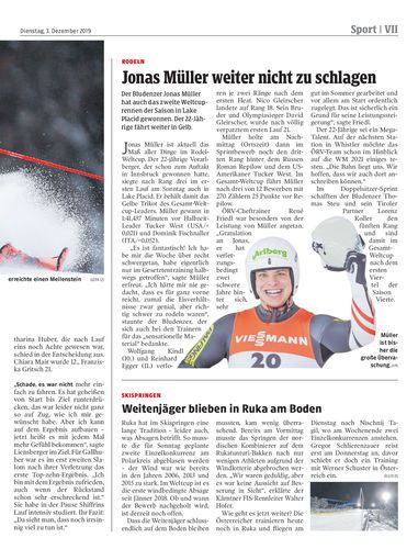 Der Bludenzer Jonas Müller hat auch das zweite Weltcuprennen der Saison in Lake Placid gewonnen. Der 22-Jährige fährt weiter in Gelb.