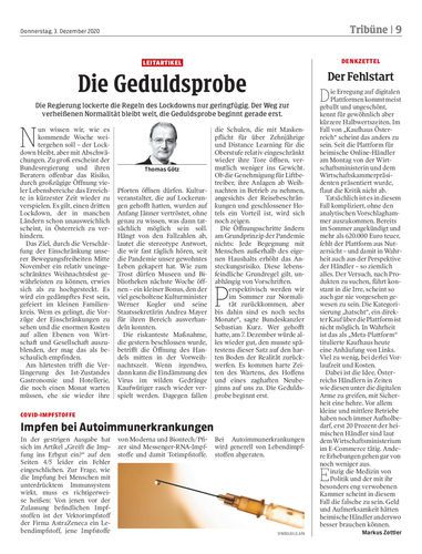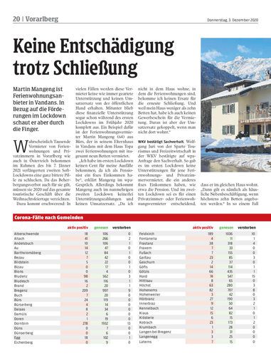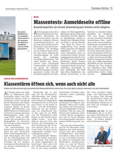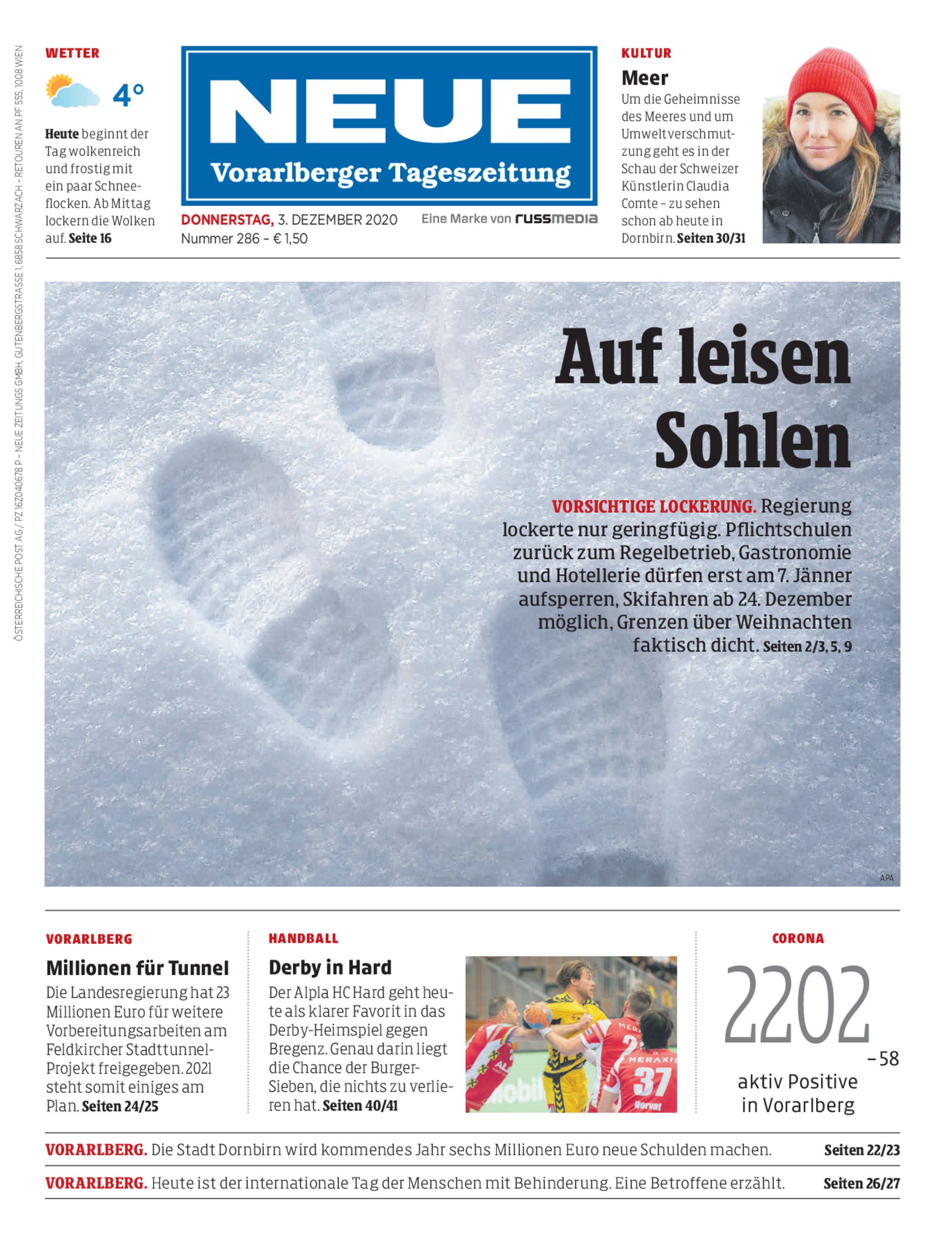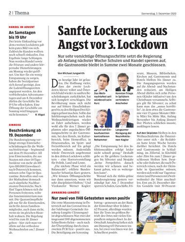 Vorsichtige Lockerung. Regierung lockerte nur geringfügig. Pflichtschulen zurück zum Regelbetrieb, Gastronomie und Hotellerie dürfen erst am 7. Jänner aufsperren, Skifahren ab 24. Dezember möglich, Grenzen über Weihnachten faktisch dicht. Seiten 2/3, 5, 9