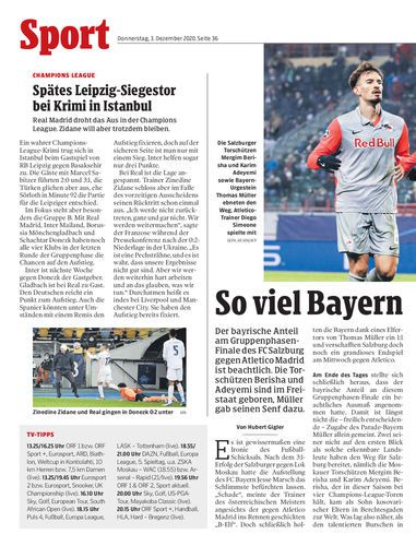 Der bayrische Anteil am Gruppenphasen-Finale des FC Salzburg gegen Atletico Madrid ist beachtlich. Die Torschützen Berisha und Adeyemi sind im Freistaat geboren, Müller gab seinen Senf dazu.