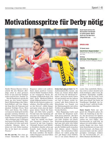 Alpla HC Hard und Bregenz HB treffen heute (20.20 Uhr) zum zweiten Derby der Saison aufeinander. Beide Teams verspüren den Druck der Verfolger, als Favorit gehen jedoch die „Roten Teufel“ ins Duell.