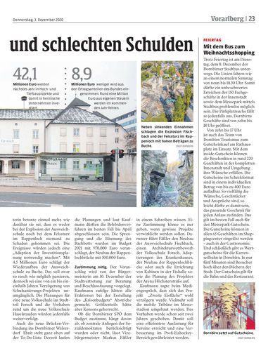 Die Stadt Dornbirn braucht Darlehen, um die laufenden Kosten zu decken. Zur Corona-Pandemie kamen zwei weitere Katastrophen.