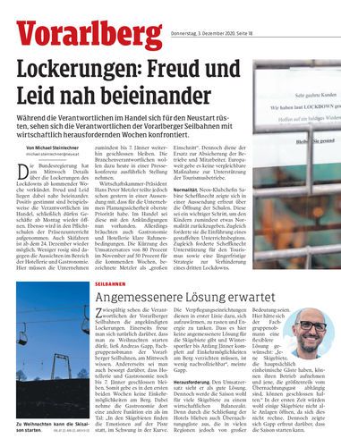 Während die Verantwortlichen im Handel sich für den Neustart rüsten, sehen sich die Verantwortlichen der Vorarlberger Seilbahnen mit wirtschaftlich herausfordernden Wochen konfrontiert.