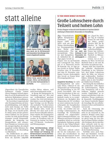 Evelyn Regner wünscht sich Handeln in Sachen Gleichstellung in Österreich. Besonders in Vorarlberg.