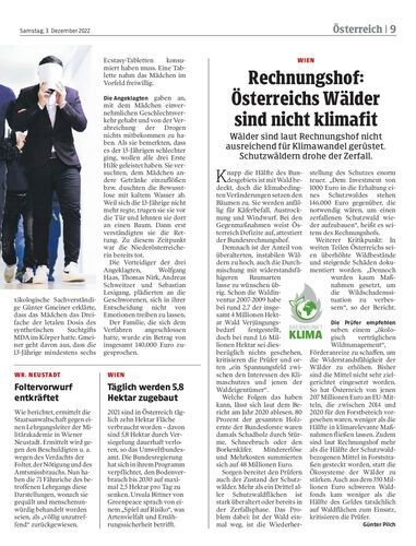 Wälder sind laut Rechnungshof nicht ausreichend für Klimawandel gerüstet. Schutzwäldern drohe der Zerfall.