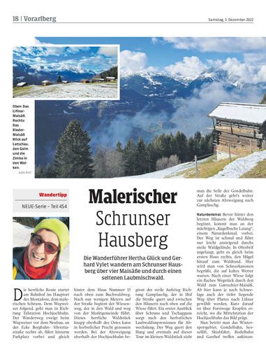 Die Wanderführer Hertha Glück und Gerhard Vylet wandern am Schrunser Hausberg über vier Maisäße und durch einen seltenen Laubmischwald.