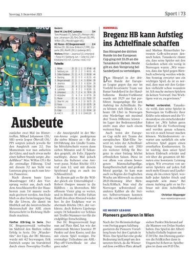Bregenz HB kann Aufstieg ins Achtelfinale schaffen
