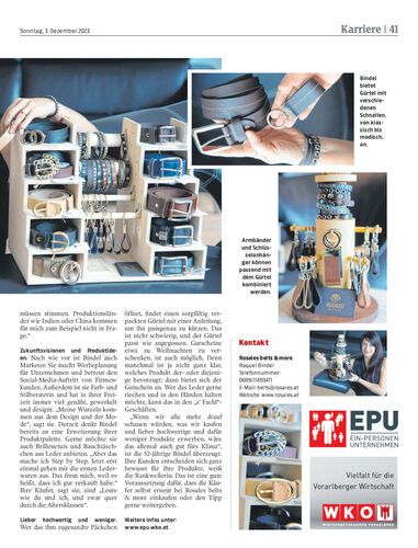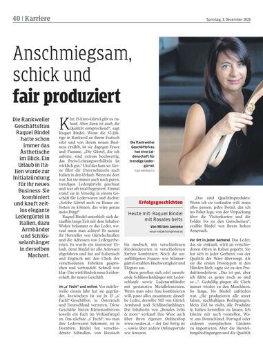 Die Rankweiler Geschäftsfrau Raquel Bindel hatte schon immer das Ästhetische im Blick. Ein Urlaub in Italien wurde zur Initialzündung für ihr neues Business: Sie kombiniert und kauft zeitlos elegante Ledergürtel in Italien, dazu Armbänder und Schlüsselanhänger in derselben Machart.