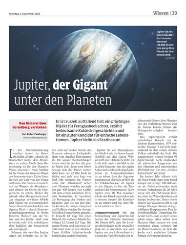 Er ist zurzeit auffallend hell, ein prächtiges Objekt für Fernglasbeobachter, erzählt bedeutsame Entdeckergeschichten und ist ein guter Kandidat für einfache Lebensformen. Jupiter bleibt ein Faszinosum.