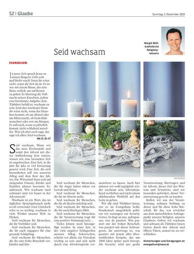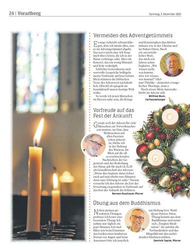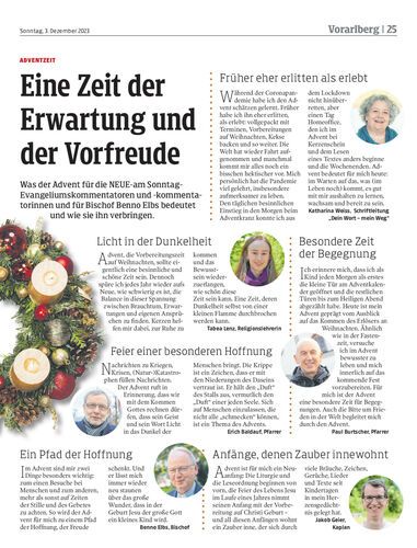 Was der Advent für die NEUE-am Sonntag-Evangeliumskommentatoren und -kommentatorinnen und für Bischof Benno Elbs bedeutet und wie sie ihn verbringen.