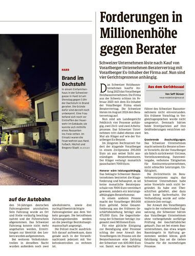 Schweizer Unternehmen löste nach Kauf von Vorarlberger Unternehmen Beratervertrag mit Vorarlberger Ex-Inhaber der Firma auf. Nun sind vier Gerichtsprozesse anhängig.