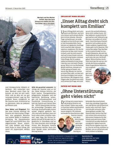 Der heutige Welttag der Menschen mit Behinderung macht auf Familien aufmerksam, die stark gefordert sind. Eine davon ist die von NEUE-Patenkind Mariami, die ein neues Pflegezimmer braucht.