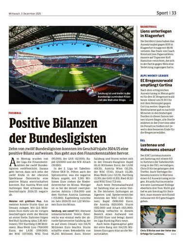 Zehn von zwölf Bundesligisten konnten im Geschäftsjahr 2024/25 eine positive Bilanz aufweisen. Das geht aus den Finanzkennzahlen hervor.